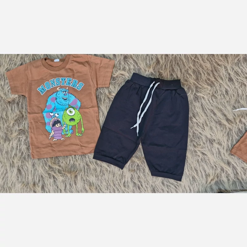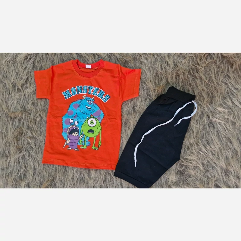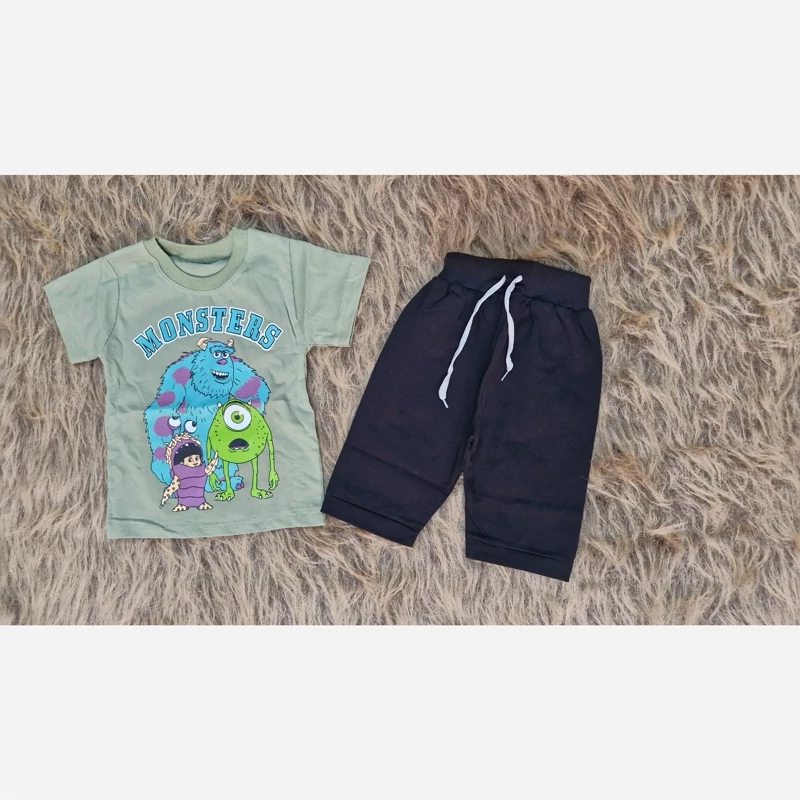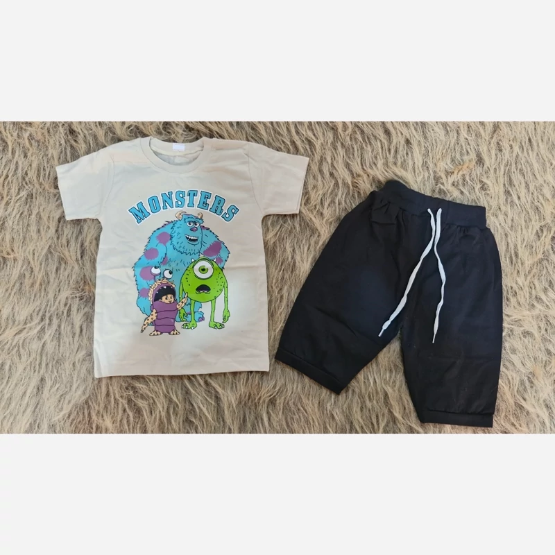 ست بچگانه اسپرت تیشرت و شلوارک طرح هیولاها در 4 رنگ
